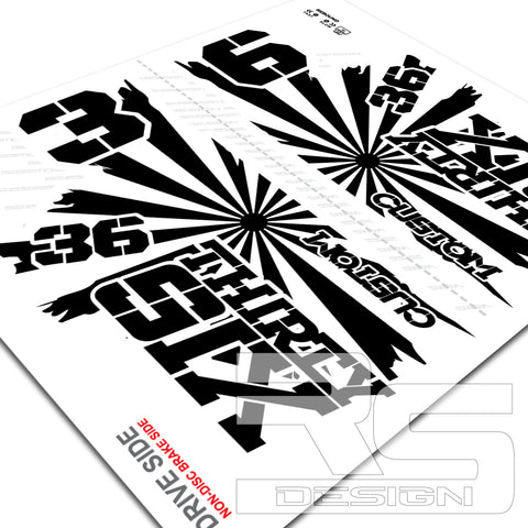 36 Decal 'RISING SUN' kit. Printed onto High Tack sticker vinyl for maximum adhesion to painted products. Over laminated in Gloss or Matte laminate for durability as standard.
