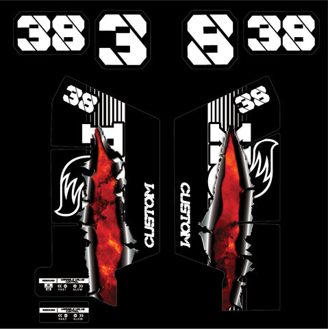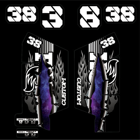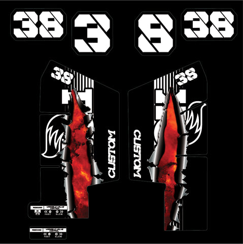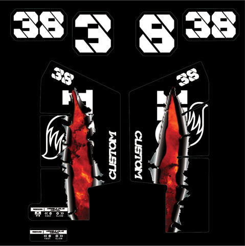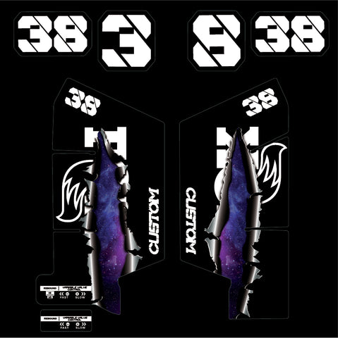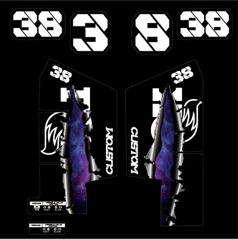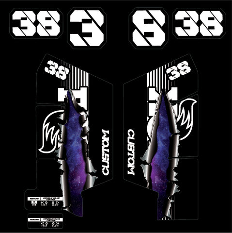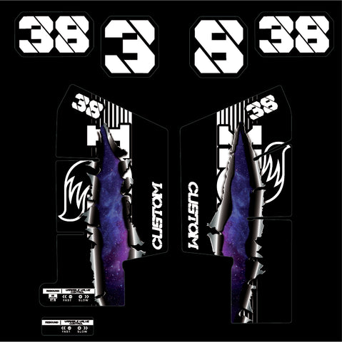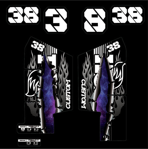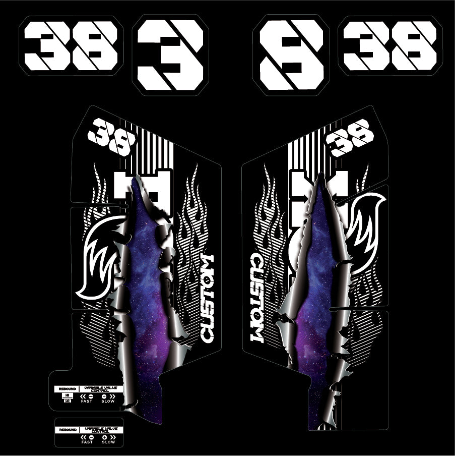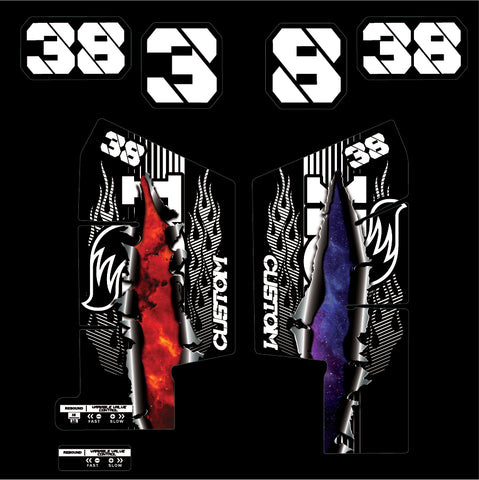38 RIPPER HELLFIRE AND GALAXY decal kits. To fit FOX 38. Get slicker than slick graphics from Richard Scott Design. Join over 10,000 customers. Wraps fit Fox 38 Factory, Elite and Performance. A separate rebound decal is supplied to add on for the Performance model.