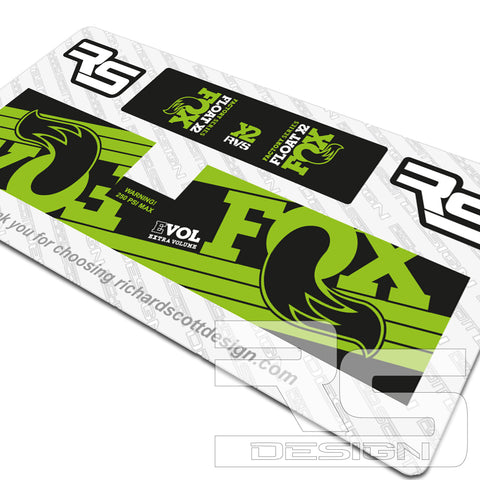 FOX X2 2018 STYLE Decal kit. Printed onto High Tack sticker vinyl for maximum adhesion to painted products. Over laminated in Gloss or Matte laminate for durability as standard.