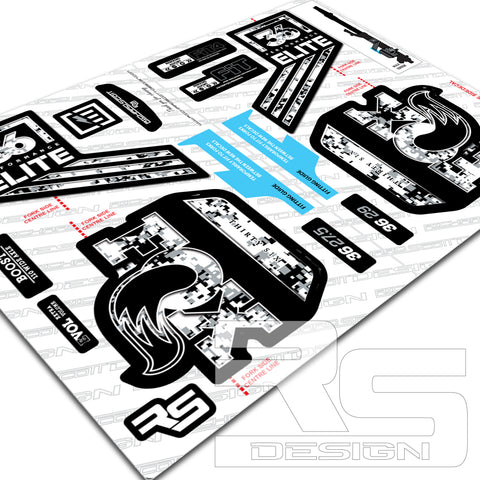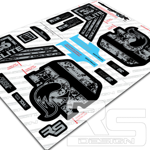 FOX 36 ELITE DIGI CAMO Decal kit. Printed onto High Tack sticker vinyl for maximum adhesion to painted products. Over laminated in Gloss or Matte laminate for durability as standard.