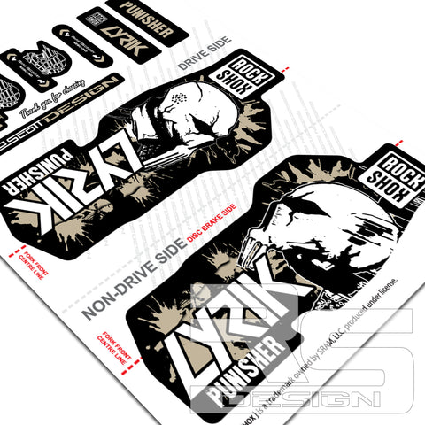 'PUNISH' STYLE ROCKSHOX LYRIK decal kits available to fit LYRIK ULTIMATE, SELECT+ AND SELECT models. These decals are not designed for older models of fork with 'power bulge' in the lower casting. Our decal sets are Official SRAM licensed logos to fit ROCKSHOX LYRIK suspension fork. Enhance the look, suiting you and your bike.