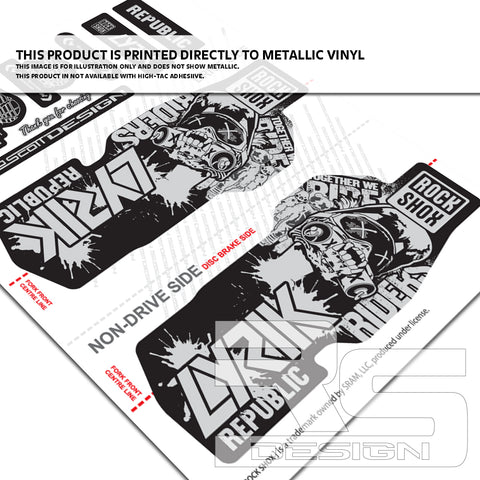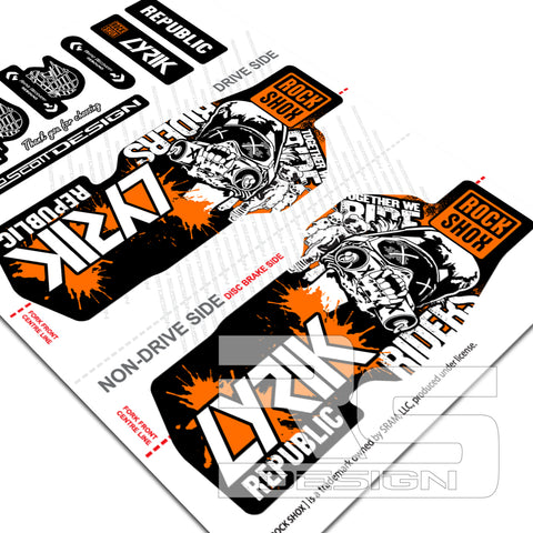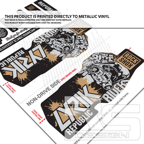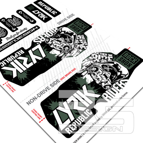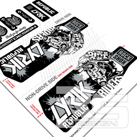 'RIDERS REPUBLIC' STYLE ROCKSHOX LYRIK decal kits available to fit LYRIK ULTIMATE, SELECT+ AND SELECT models. These decals are not designed for older models of fork with 'power bulge' in the lower casting. Our decal sets are Official SRAM licensed logos to fit ROCKSHOX LYRIK suspension fork. Enhance the look, suiting you and your bike.